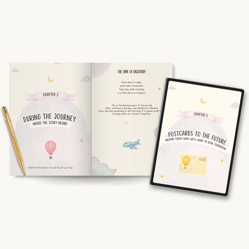 While traveling, Wanderbook becomes your family’s personal storyteller. Guided pages for each day invite you to capture thoughts, emotions, and the little details that make your journey unique.
